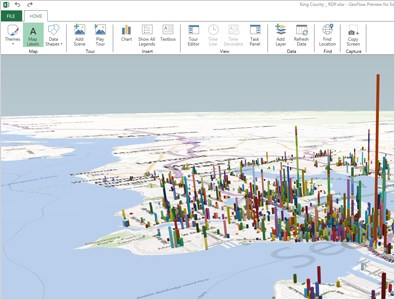 - Power Map, una herramienta de visualización en 3D, que permite analizar datos geográficos y temporales, superpuestos sobre mapas. Además, se pueden capturar escenas para la creación de presentaciones.